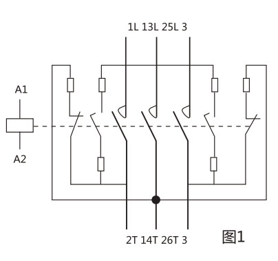 ● 接觸器接線(xiàn):主電路導(dǎo)線(xiàn)其載流量應(yīng)不小于1.3In,接線(xiàn)端子與導(dǎo)線(xiàn)的連接應(yīng)有足夠的壓力,擰緊螺釘?shù)墓ぞ咭绰葆數(shù)闹睆竭x用,盒式接線(xiàn)端子可以直接將多股導(dǎo)線(xiàn)置入壓緊。接線(xiàn)原圖見(jiàn)圖1.