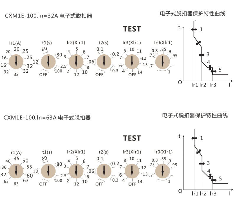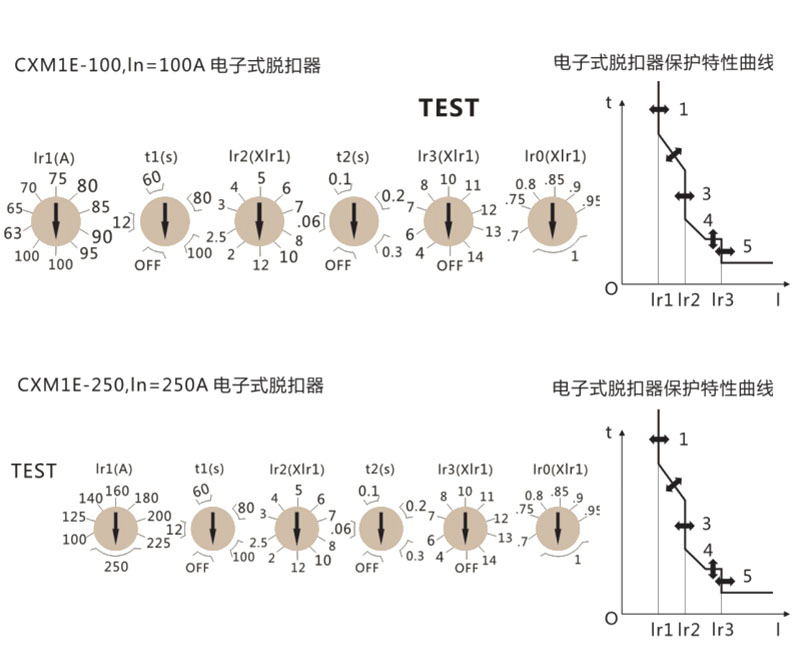 ●選擇配合:CXM1E電子式塑殼斷路器具有三段保護(hù)功能,使用類別為B的斷路器與連接在同一電路中的其它短路保護(hù)裝置在路條件下具有選擇性配合。