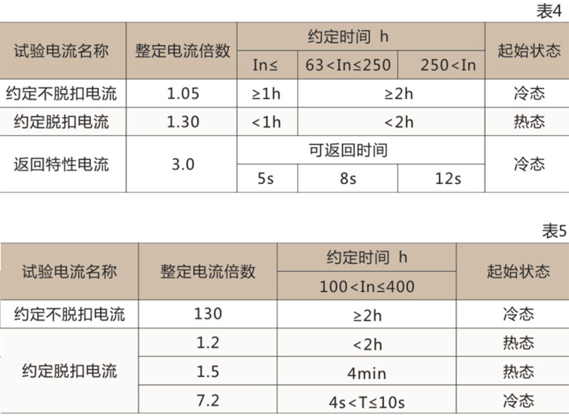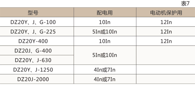 1.DZ20Y、J、G-100斷路器,斷路器額定電流In≤40A時,瞬時動作電流值為600A,不動作電流為10In。
