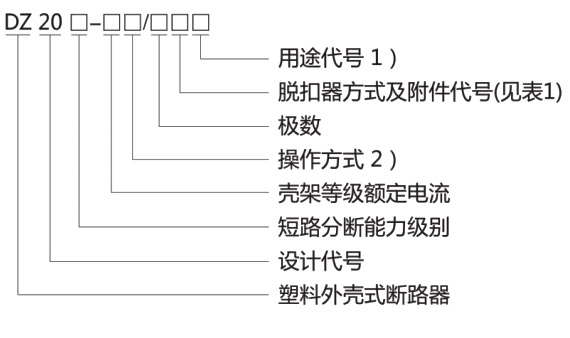 DZ20系列(透明)塑料外殼式斷路器(以下簡稱斷路器),適用于交流50Hz,額定電流從16A至2000A,額定絕緣電壓660V,額定工作電壓380V及以下的電路中,一般作配電用,其中Y、J、G型的殼架等級額定電流225A和Y型400的斷路器亦可作為保護(hù)電動機之用,在正常情況下,斷路器可分別作為線路的不頻繁轉(zhuǎn)換及電動機的不頻繁啟動之用。