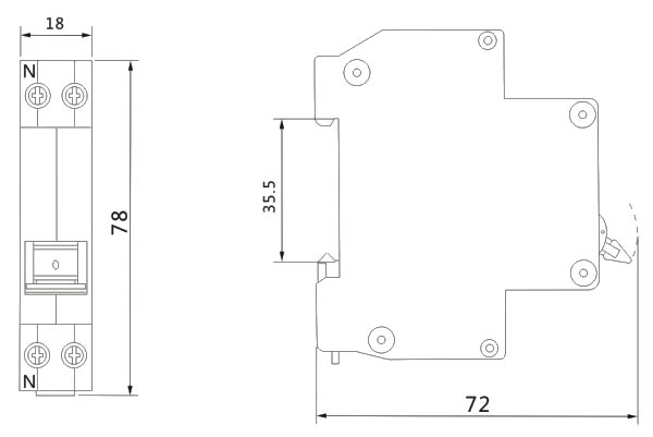 斷路器極數(shù)為: 2P(1個(gè)保護(hù)極,N極可開(kāi)閉)