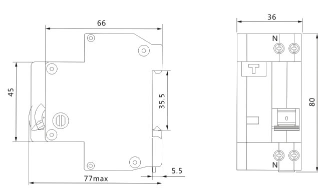 ● 斷路器極數(shù)為: 2P(1個(gè)保護(hù)極,N極可開閉)