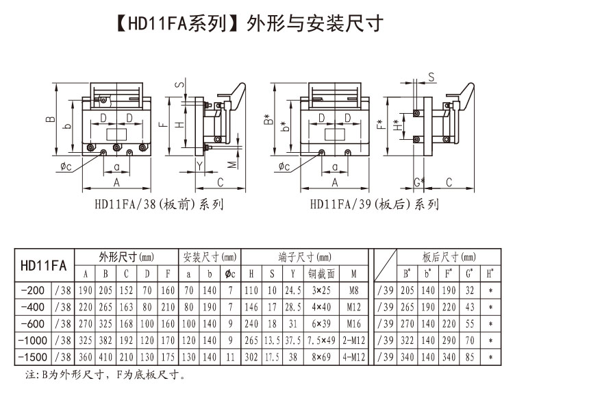 ● 中央正面杠桿傳動式的刀開關(guān),為了便于開關(guān)板的設(shè)計和安裝,從200-4000A的縱向安裝尺寸皆相同。