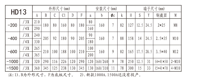 常規(guī)型號(hào)有:HD13BX-600/31,HD13BX-1000/31,HD13BX-1500/31