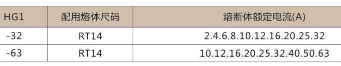 注:當隔離器用于電動機電路時,允許熔斷體的額定電流大于隔離器的額定工作電流。