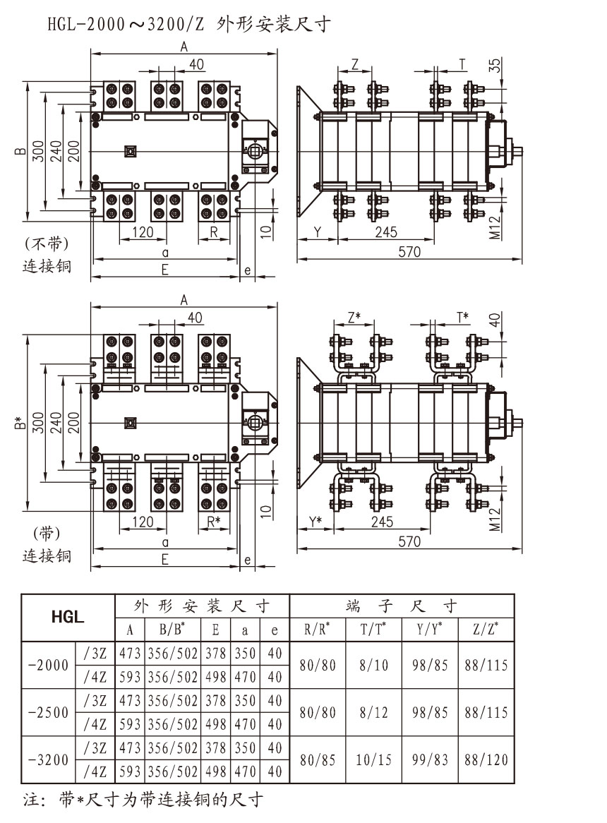 常規(guī)型號:HGLR-160/3,HGLR-250/3,HGLR-400/3,HGLR-630/3