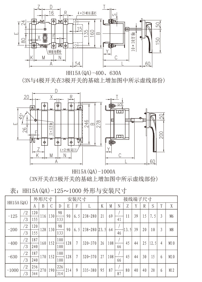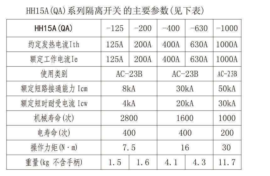 常規(guī)型號:HH15A(QA)-400/3,HH15A(QA)-630/3,HH15A(QA)-1000/3