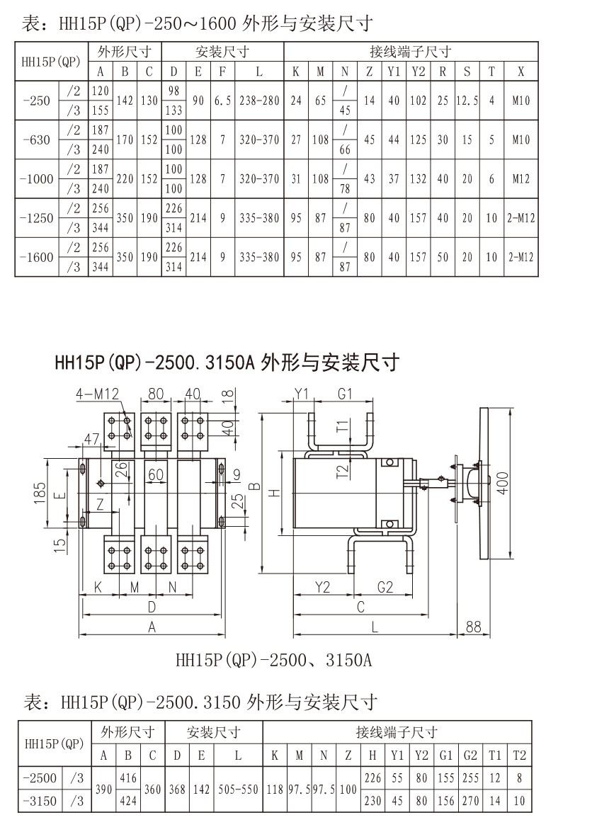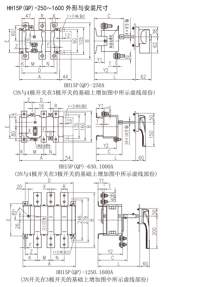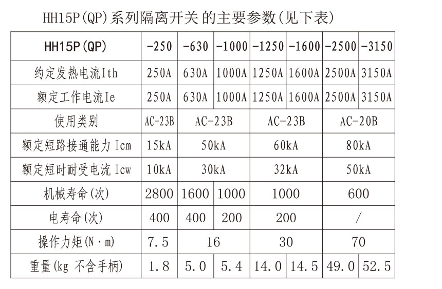 常規(guī)型號(hào):HH15P(QP)-630/3,HH15P(QP)-1000/3,HH15P(QP)-1250/3
