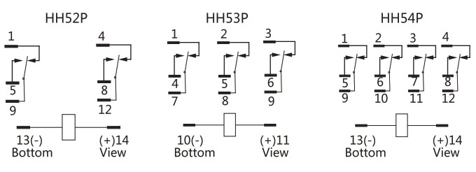 HH52P,HH53P,HH54P,輸出觸頭接線圖