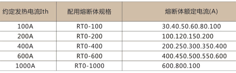 ● 開關(guān)與熔斷體的配用關(guān)系: