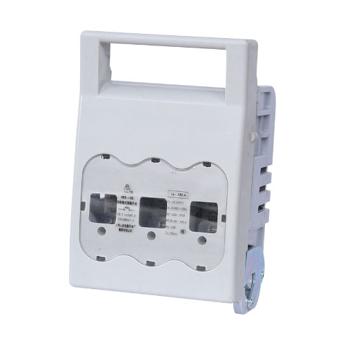 開(kāi)關(guān)主要由樹(shù)脂底座與上蓋兩大部份組成,三對(duì)夾型觸頭與滅弧室直接裝在底座上,熔斷體裝在上蓋中直接作為動(dòng)觸頭刀片用,上蓋可沿鉸銷旋轉(zhuǎn)成扇形打開(kāi)使熔斷體從插座中完全拔出,上蓋亦可方便地從底座上撤出,便于開(kāi)關(guān)的安裝與安全拆換熔斷體。