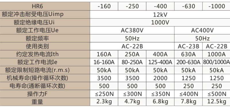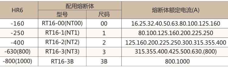 常規(guī)型號(hào)有:HR6-160/31,HR6-250/31,HR6-400/31,HR6-630/31