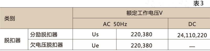 器或欠壓脫扣器的斷路器時必須注明額定控制電源電壓值(見表3),