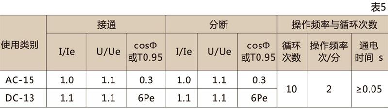 輔助觸頭和報警的非正常接通與分?jǐn)嗄芰σ姳?