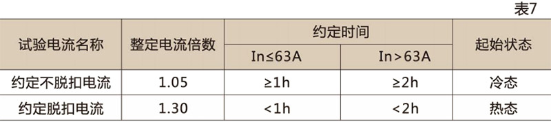 配電保護用斷路器在基準(zhǔn)周圍空氣溫度+30℃±2℃下,各極同時通電時無溫度補償?shù)姆磿r限斷開特性見表7。
