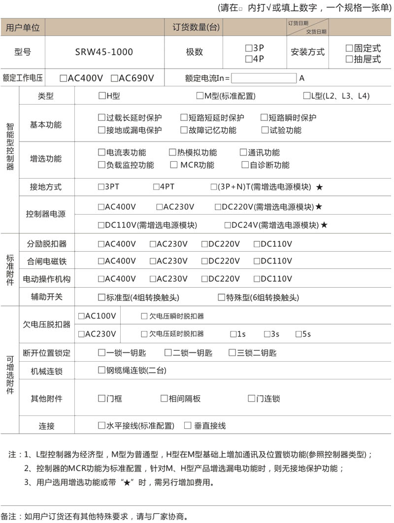 九,(SRW45萬能式斷路器)訂貨規(guī)范