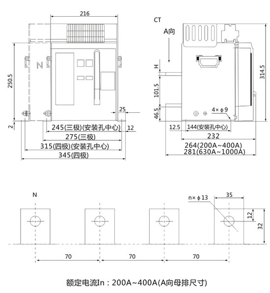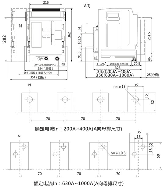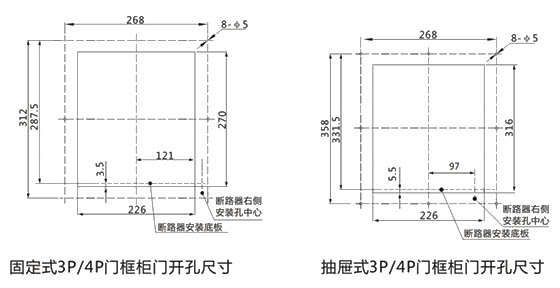 ● 固定式斷路器的安裝尺寸和外形尺寸見圖5