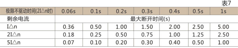 ● 剩余漏電流保護(hù)是通過外接外部漏電互感器來實(shí)現(xiàn)剩余漏電流訊號檢測動作特性為延時(shí)型。其延時(shí)特性符合表7(表中不包括控制器固有動作時(shí)間20ms)