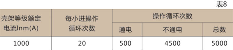 ● 斷路器的操作循環(huán)次數(shù)見表8
