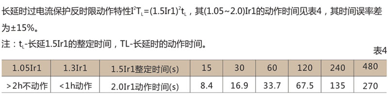 短延時過電流保護為定時限,如要求低倍數(shù)為反時限時,其特性按:I2Ts=(8Ir1)2,ts為一般延時整定時間;當(dāng)過載電流>8Ir1時,自動轉(zhuǎn)換為定時限特性,其定時限特性見表5,時限誤差為±15%