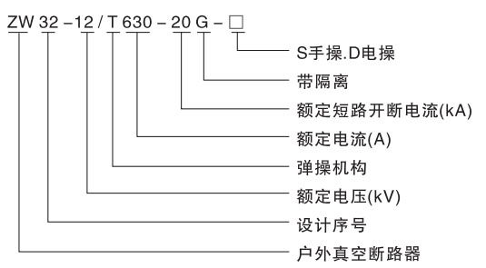 常規(guī)型號(hào):ZW32-12/630-20,ZW32-12/1250-20,ZW32-12G/630-20。